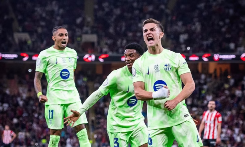 تأهل فريق برشلونة إلى نهائي كأس السوبر الإسباني لكرة القدم، المقام في السعودية، بعد فوزه بثنائية نظيفة على أتلتيك بلباو في مباراة الدور نصف النهائي التي أقيمت اليوم الأربعاء، على ملعب الجوهرة المشعة في مدينة جدة.